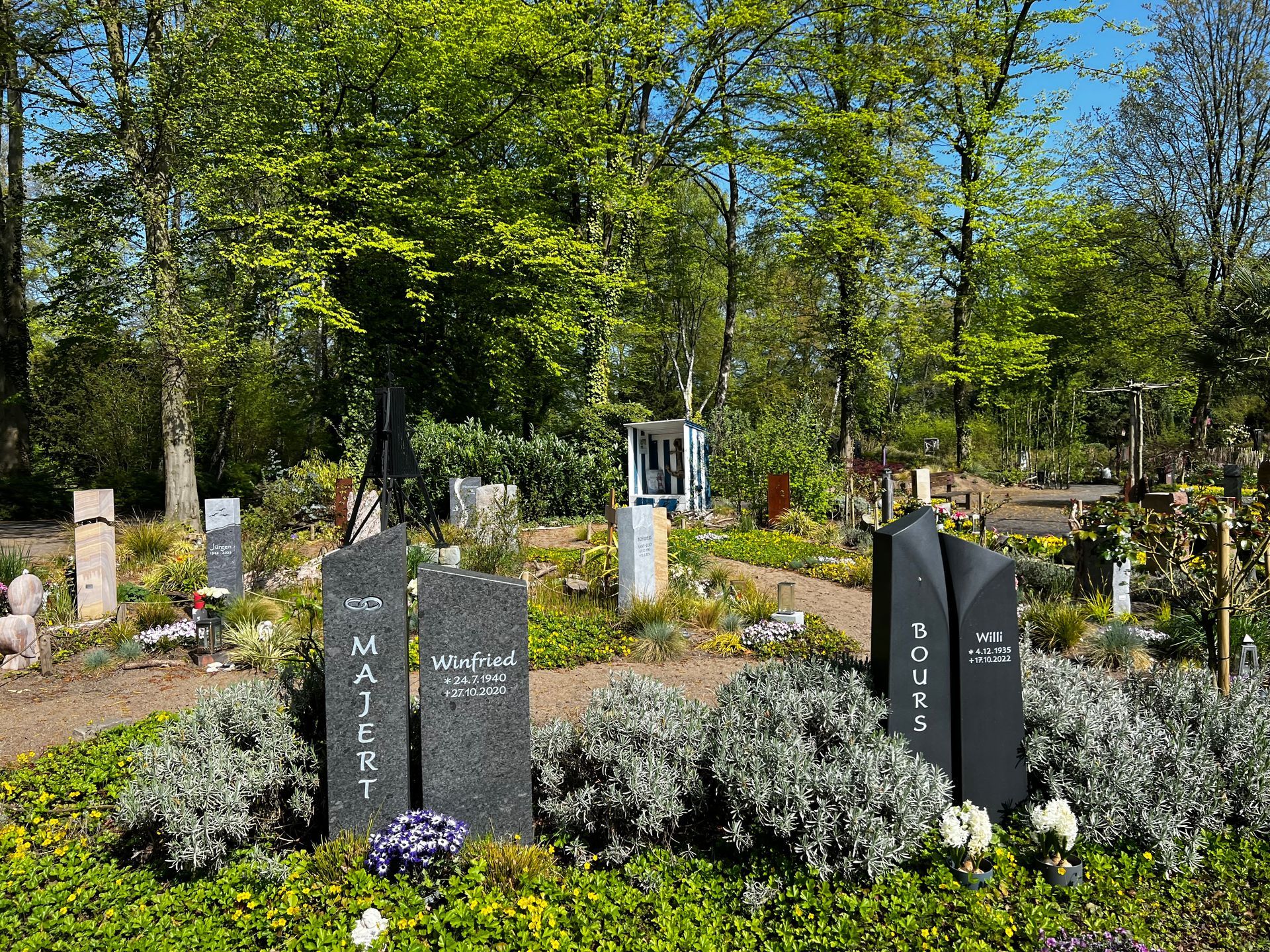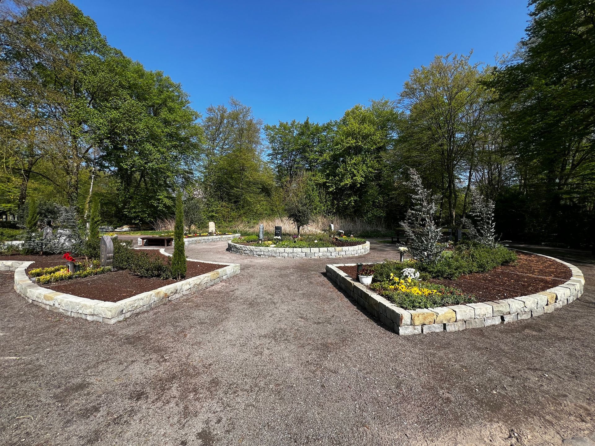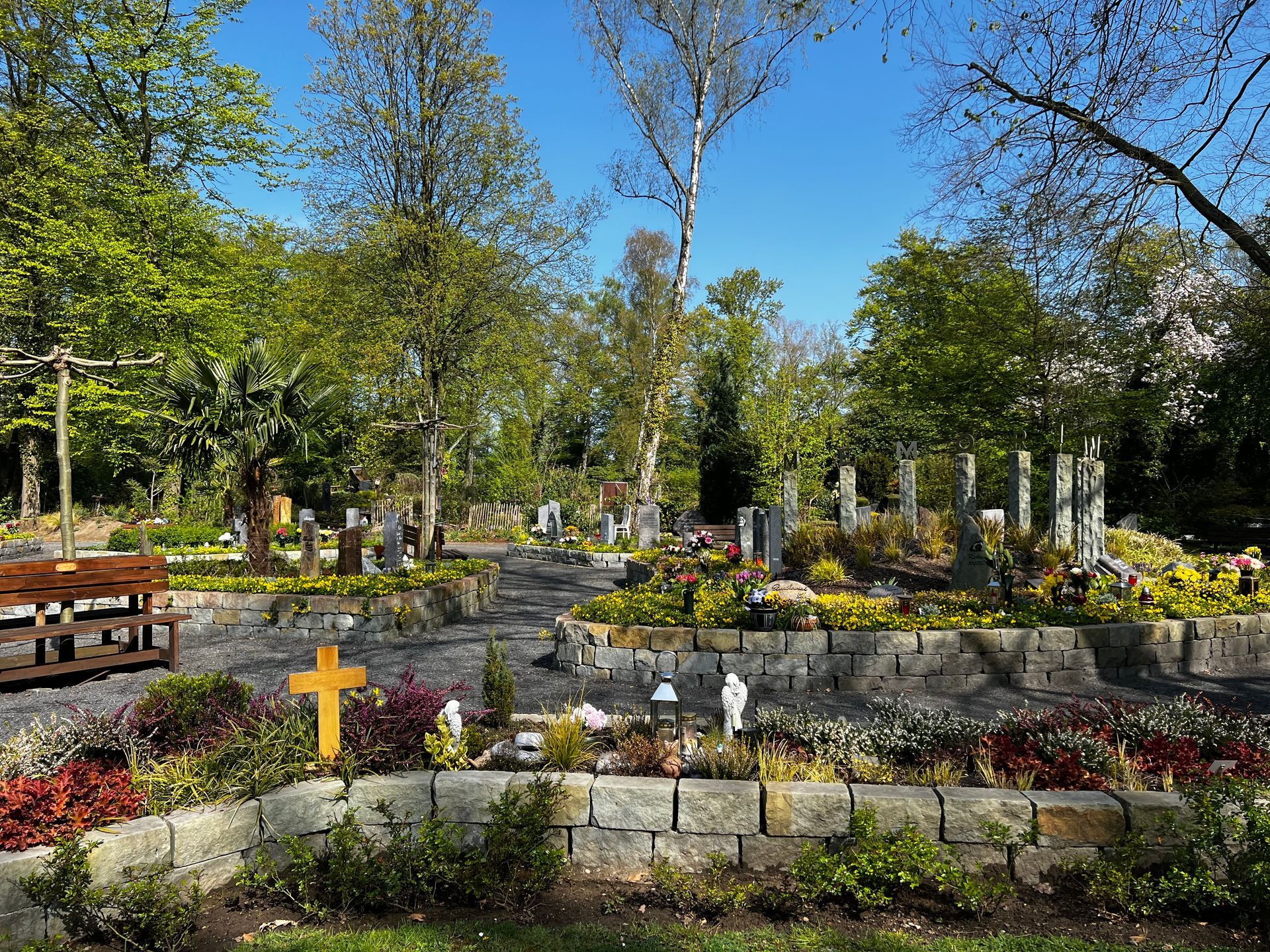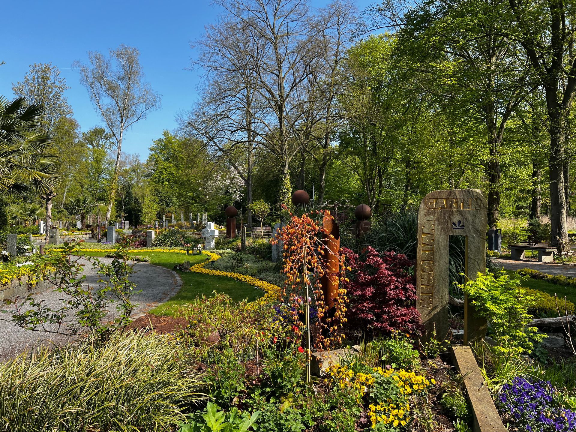 Besonders angelegte pflegefreie Gräber befinden sich auf dem Parkfriedhof im Memoriam Garten.