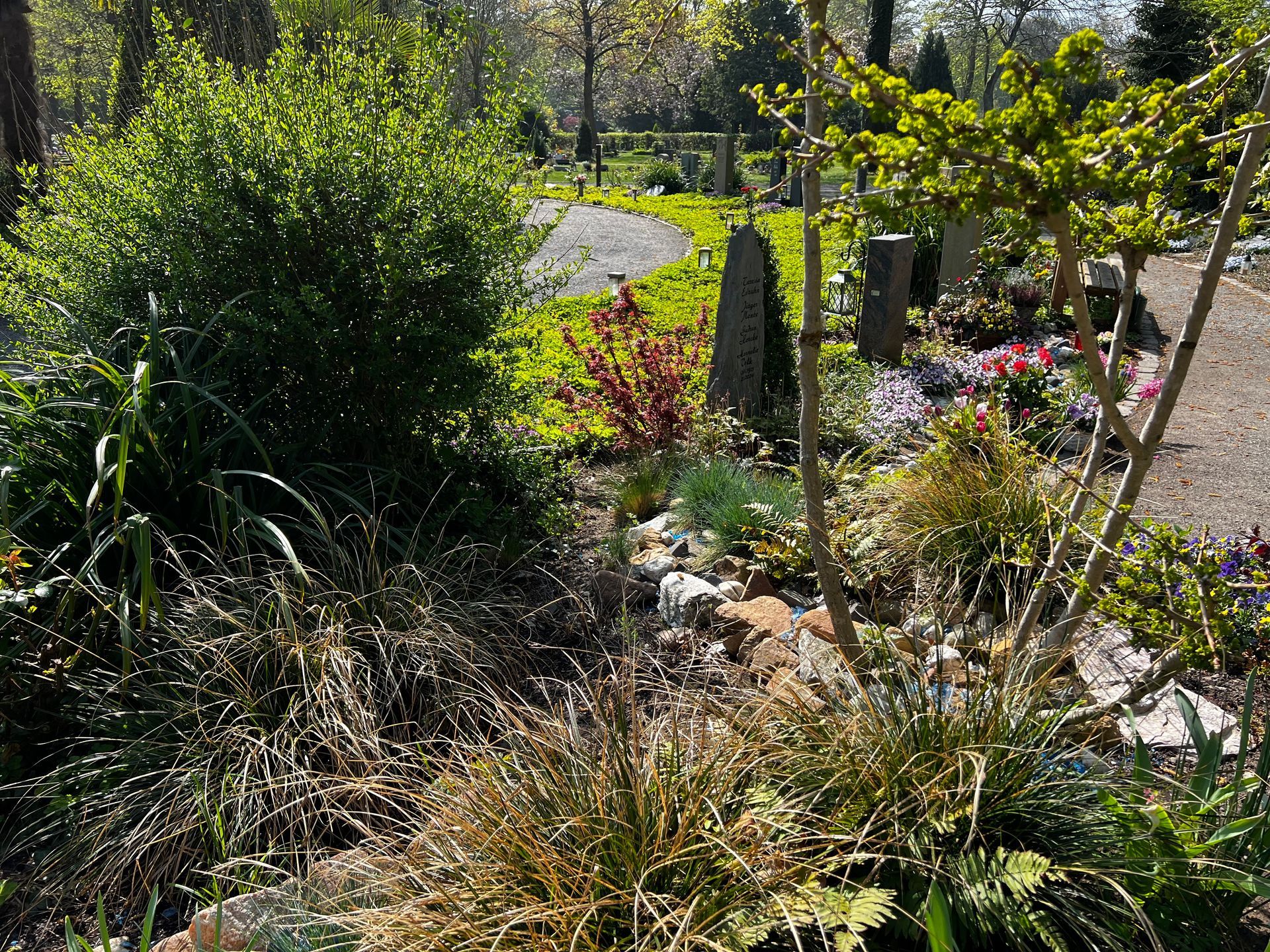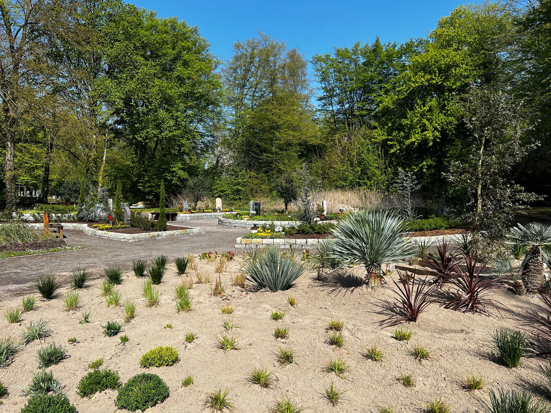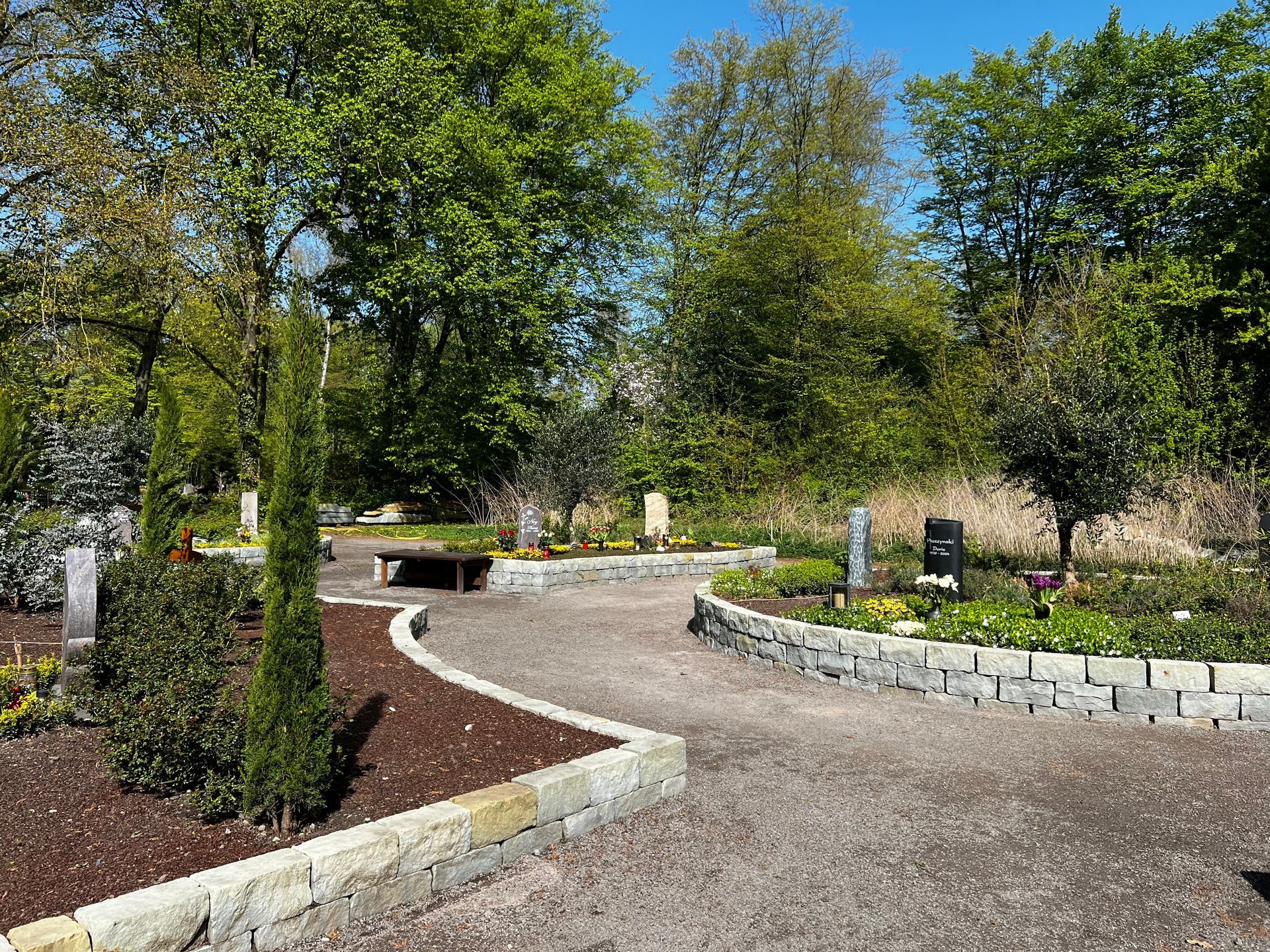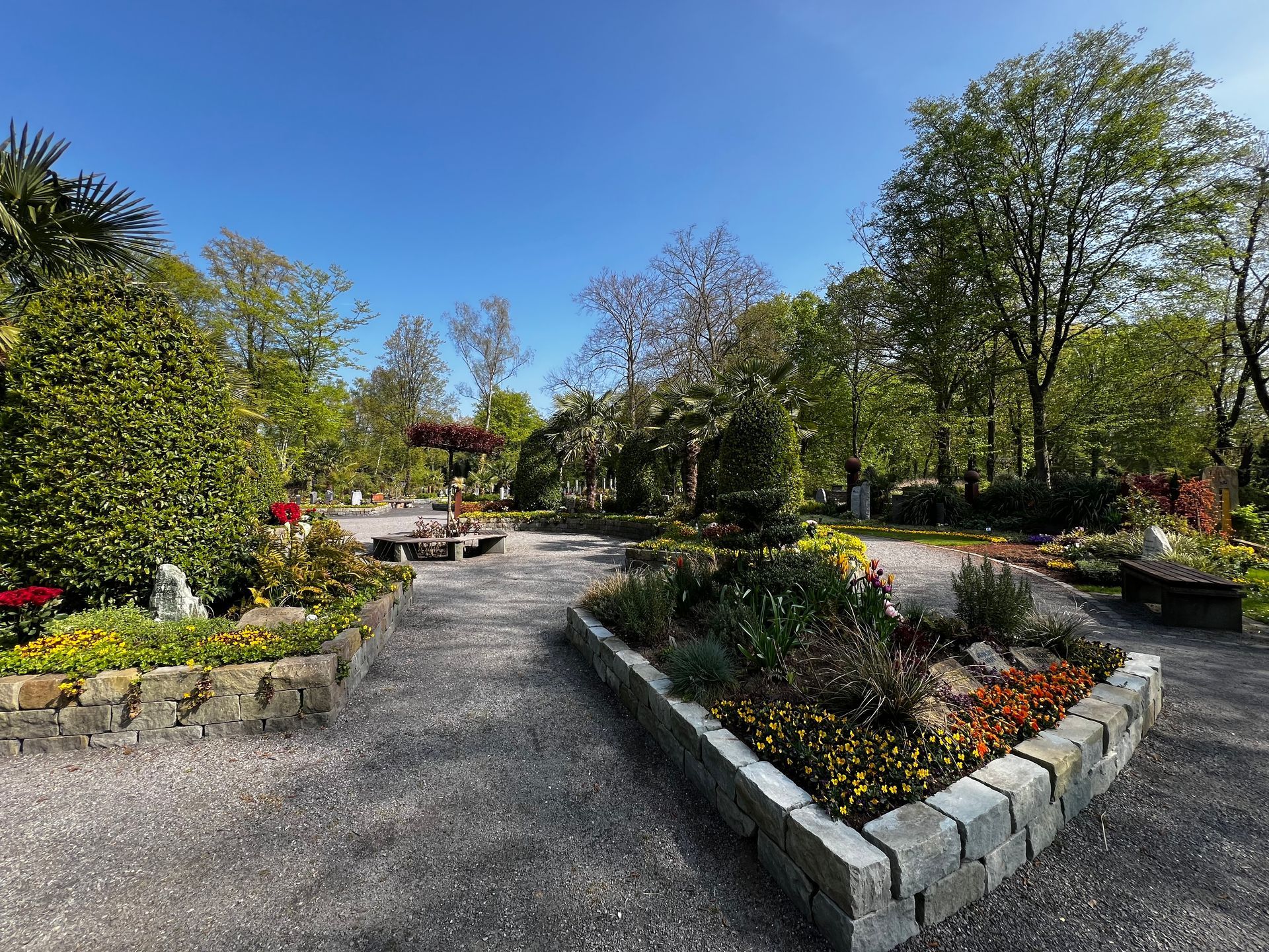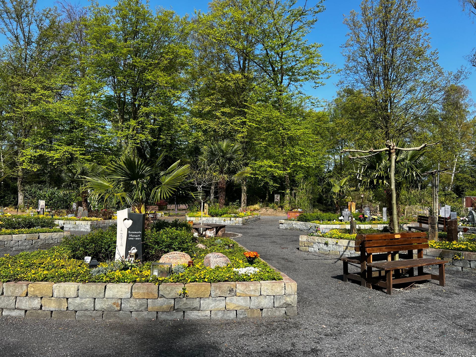 Besonders angelegte pflegefreie Gräber befinden sich auf dem Parkfriedhof im Memoriam Garten.
