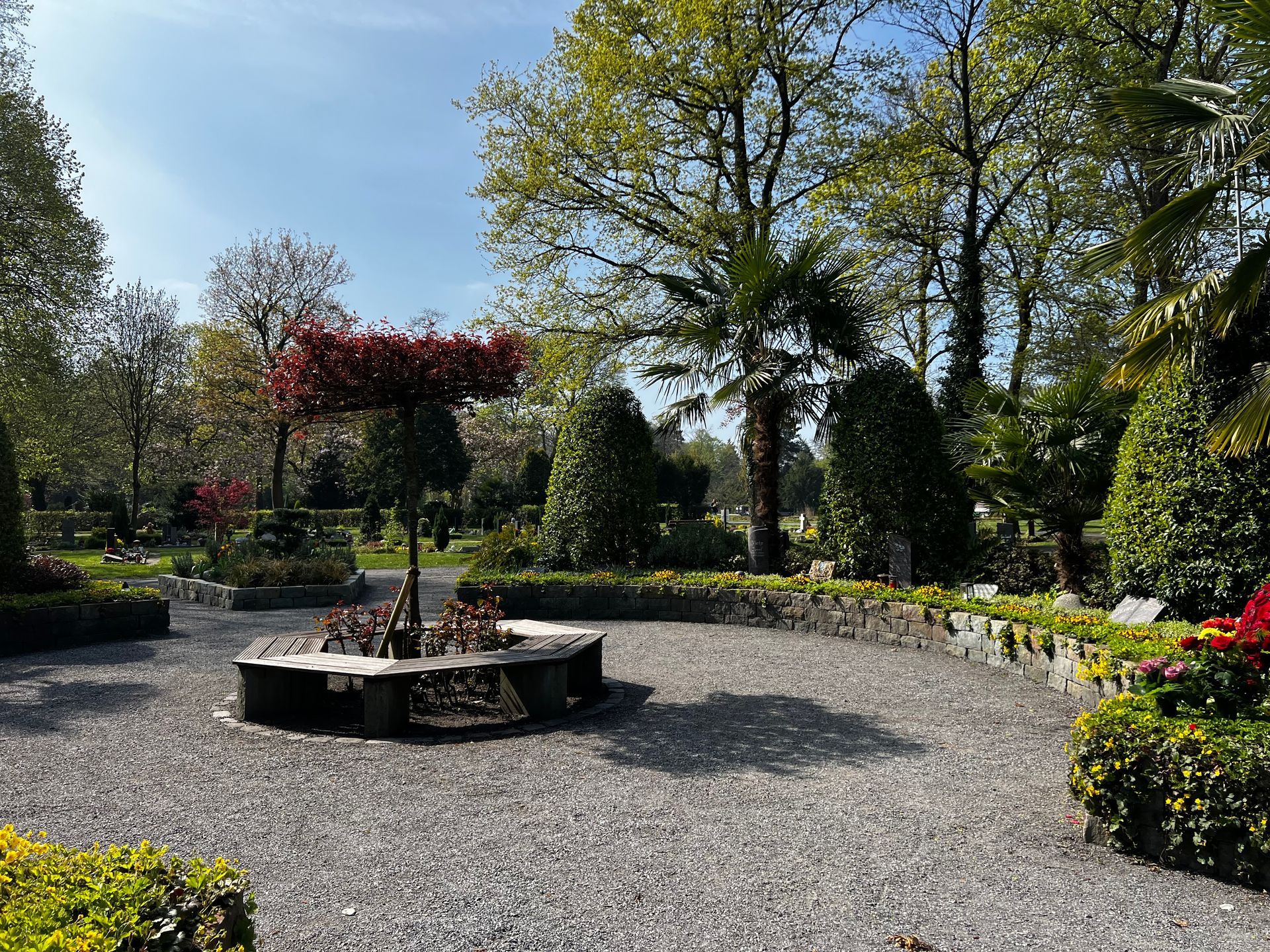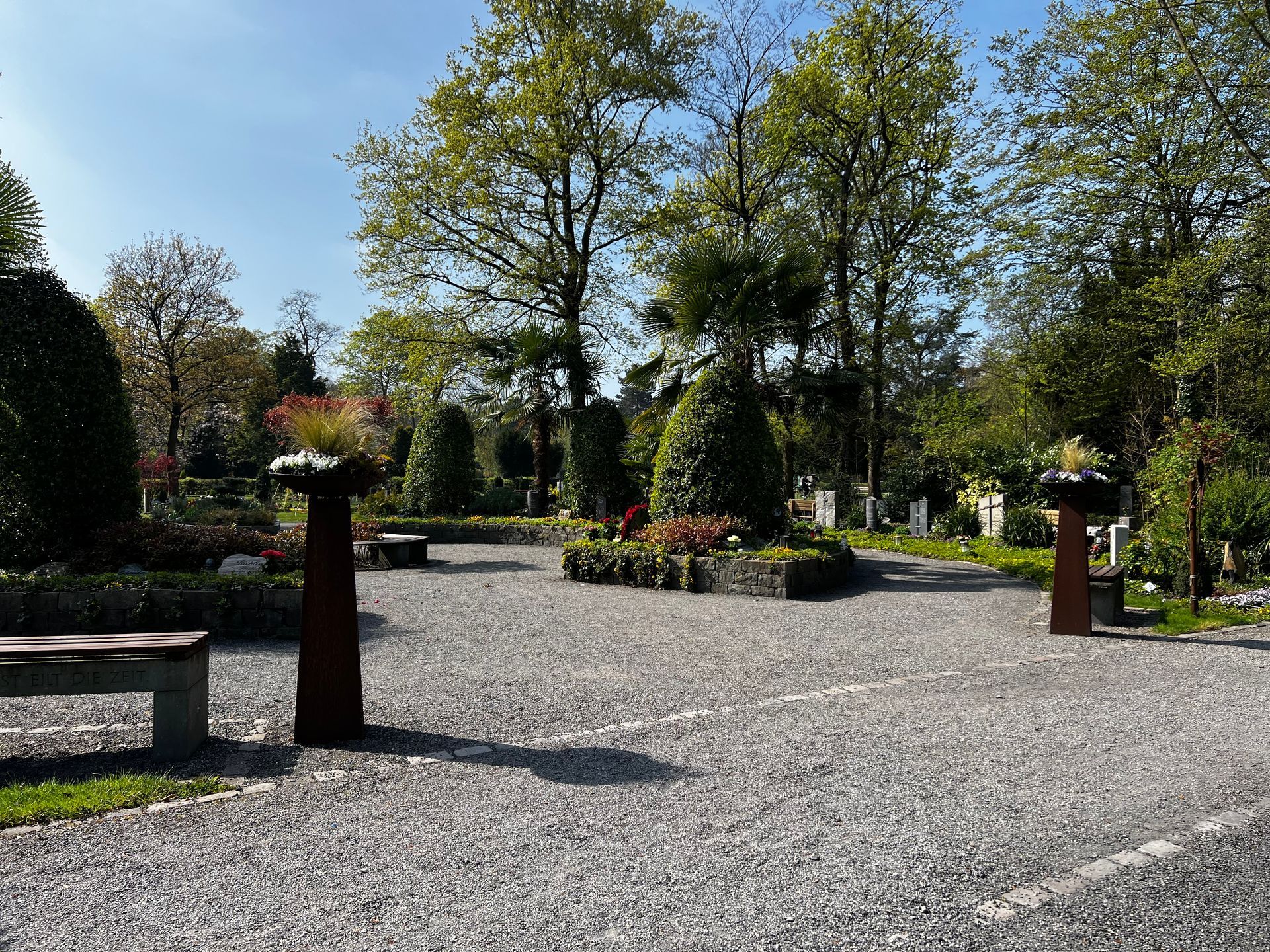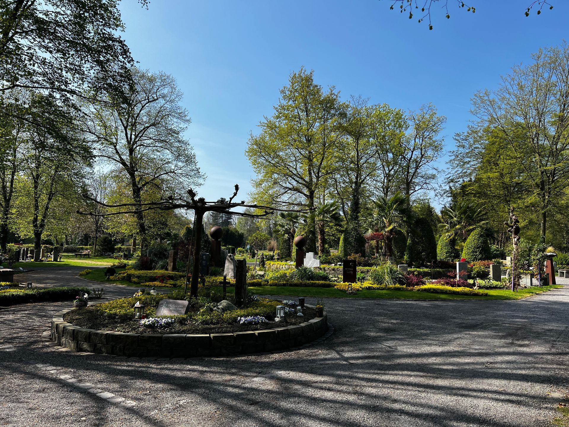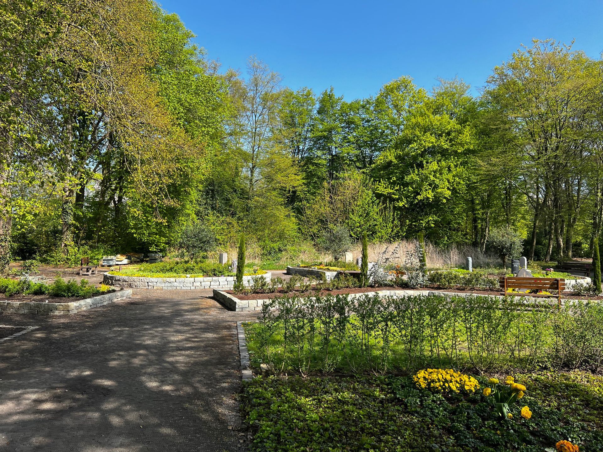 Besonders angelegte pflegefreie Gräber befinden sich auf dem Parkfriedhof im Memoriam Garten.